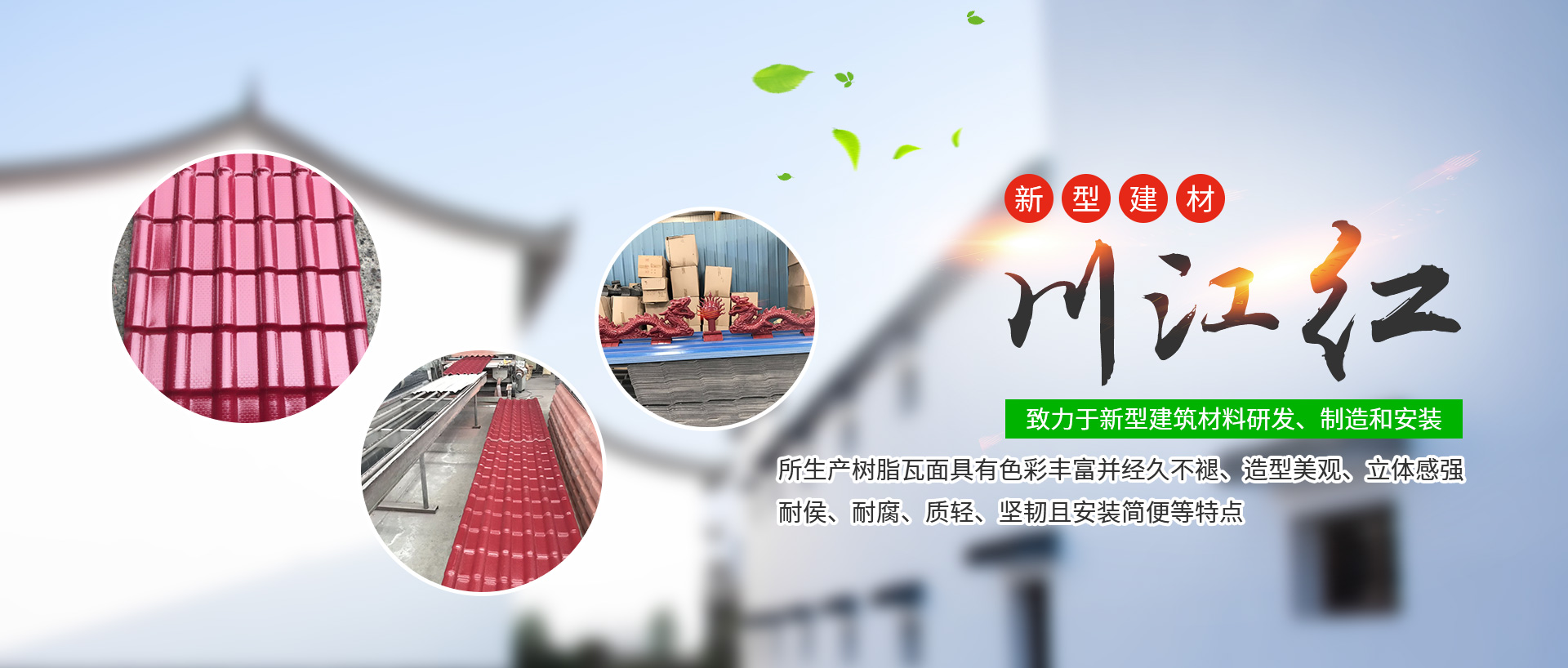 成都川江紅新型建材有限公司是2011-03-16成立,是西南領(lǐng)先合成樹(shù)脂瓦制造商,主要從事四川合成樹(shù)脂瓦、成都合成樹(shù)脂瓦的研發(fā)銷(xiāo)售。位于成都市西南航空工業(yè)港,是一家以科技為先導(dǎo),致力于新型建筑材料研發(fā)、制造...